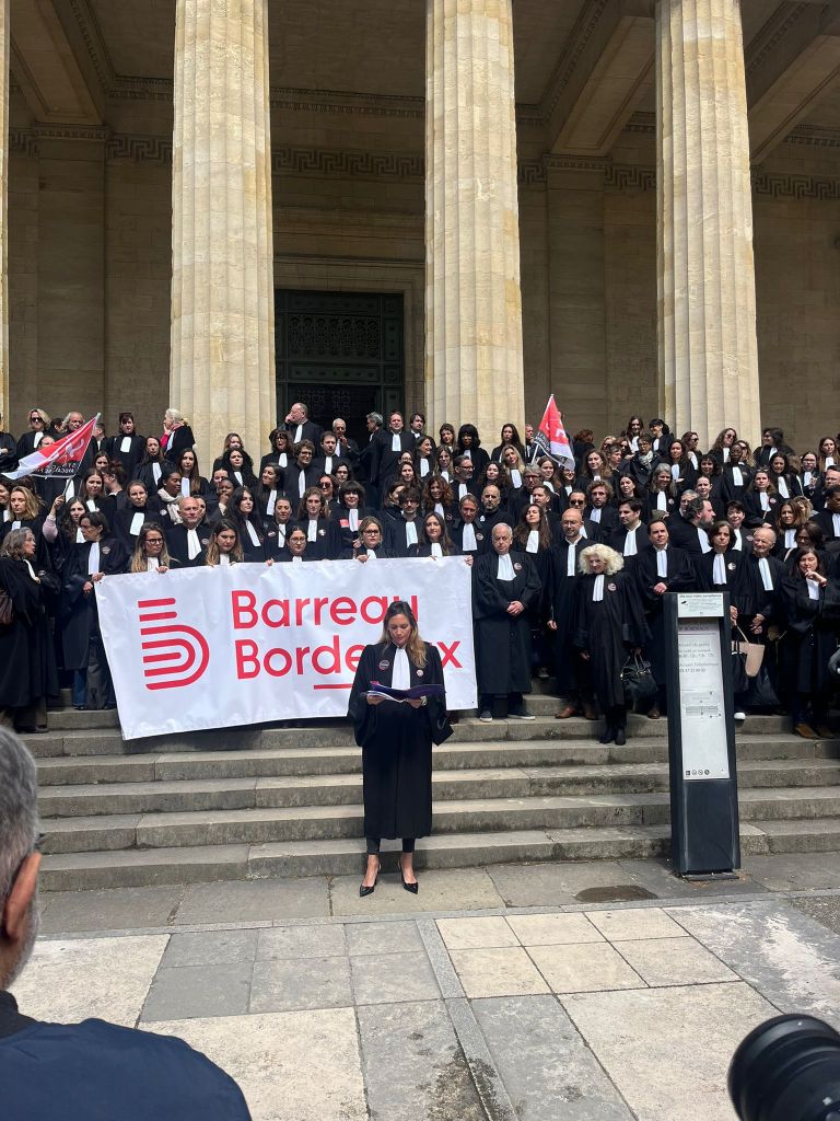 Avec Marie TASTET, Vice-Bâtonnière et les membres du Conseil de l’Ordre, le Barreau de Bordeaux a de nouveau manifesté ce lundi 13 avril sur les marches du Palais Thiac. Nous étions en grand nombre, comme le 2 avril, réitérant une ferme opposition au projet de loi S.U.R.E. – cf numéro spécial de la Gazette : https://www.gazette-droits-fondamentaux.com/post/vers-un-aggiornamentode-la-justice-pénale. Les Avocats Honoraires étaient présents, exprimant leur solidarité à l’égard des consoeurs et confrères inscrits.